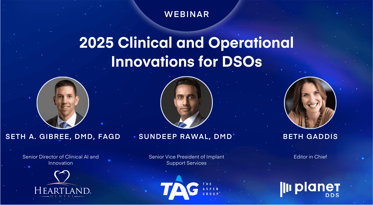 Join Planet DDS, Heartland Dental and Aspen Dental for a 45-minute webinar discussing the most important clinical and operational innovations for DSOs in 2025. Hear from: We’ll cover how the...