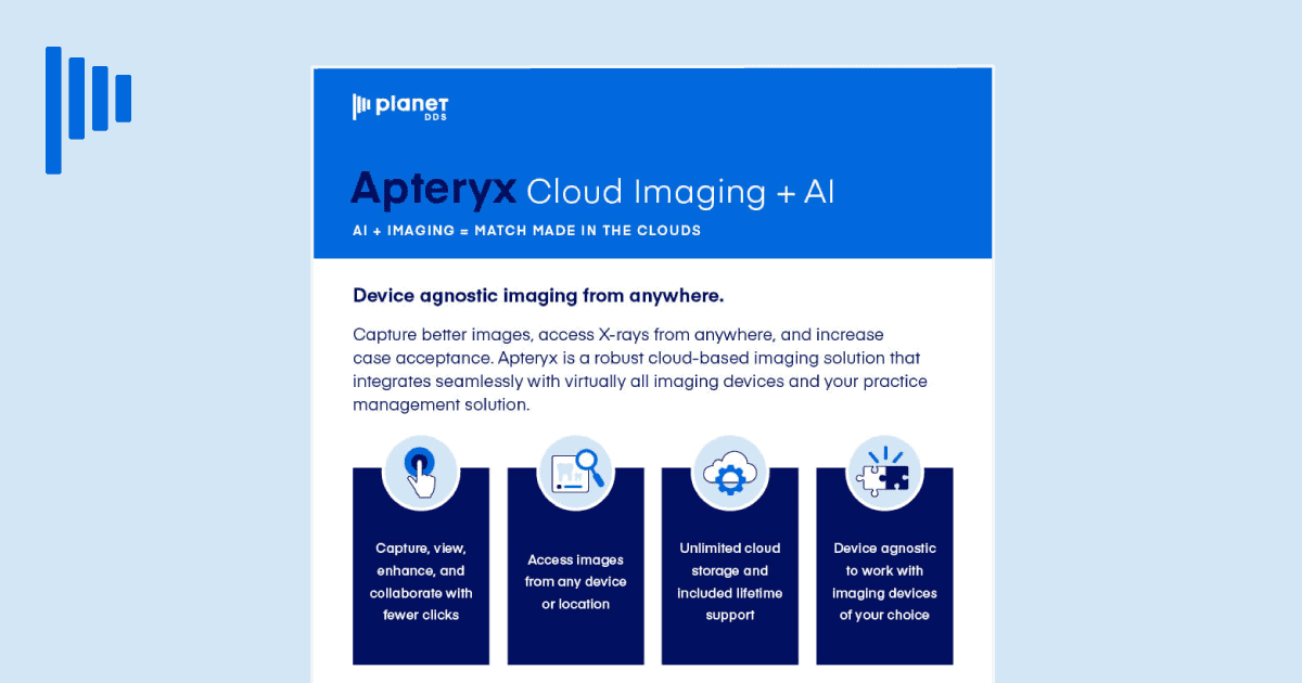Device agnostic imaging from anywhere. Capture better images, access X-rays from anywhere, and increase case acceptance. Apteryx is a robust cloud-based imaging solution that integrates seamlessly with virtually all imaging devices and your practice management solution.