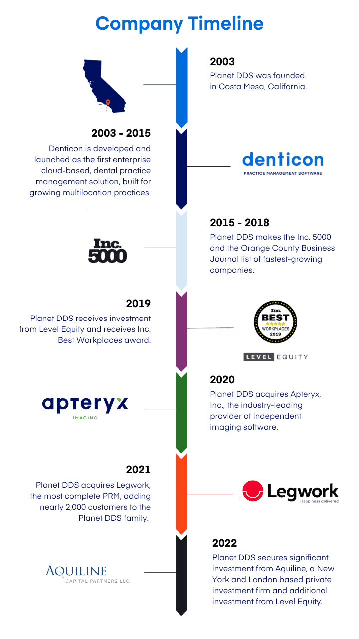 A common theme in our business’s history is how often we’ve been the first to introduce an industry innovation. We were the first to the cloud with Denticon, and we’ve continued to find unprecedented ways to solve problems. We’ve also facilitated significant acquisitions, the most recent being Legwork — a leader in patient relationship management — in December 2021.